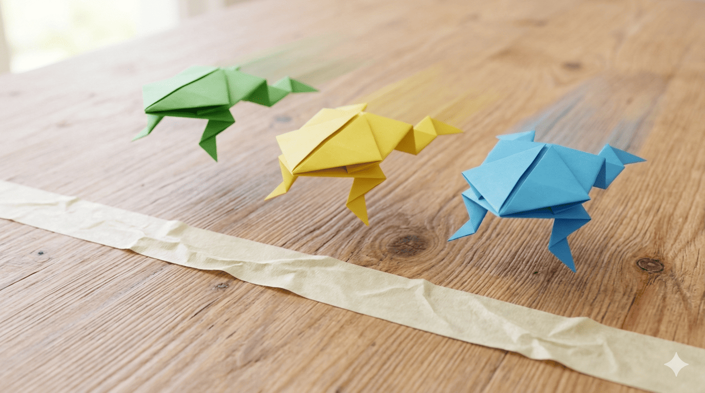 7. سباق الضفادع الورقية (Origami Frog Race)