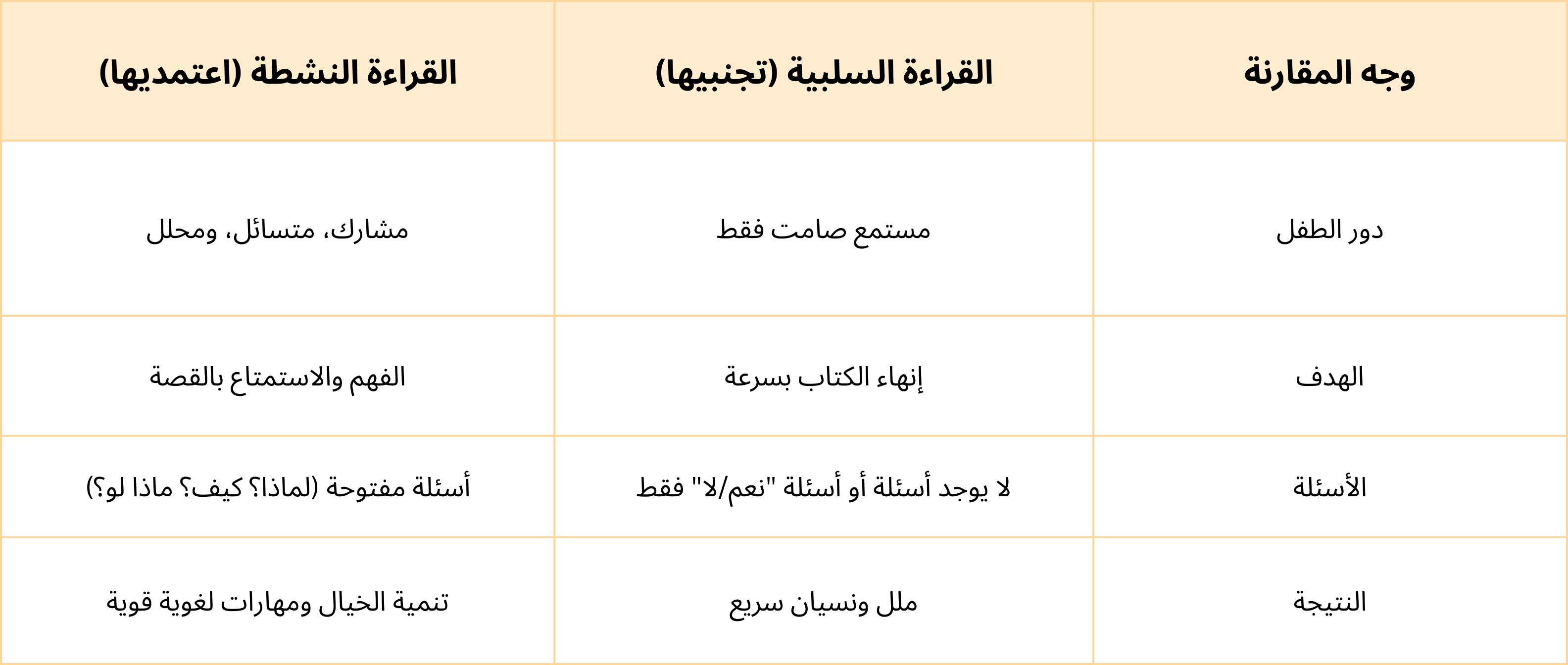 جدول مقارنة: القراءة السلبية مقابل القراءة النشطة