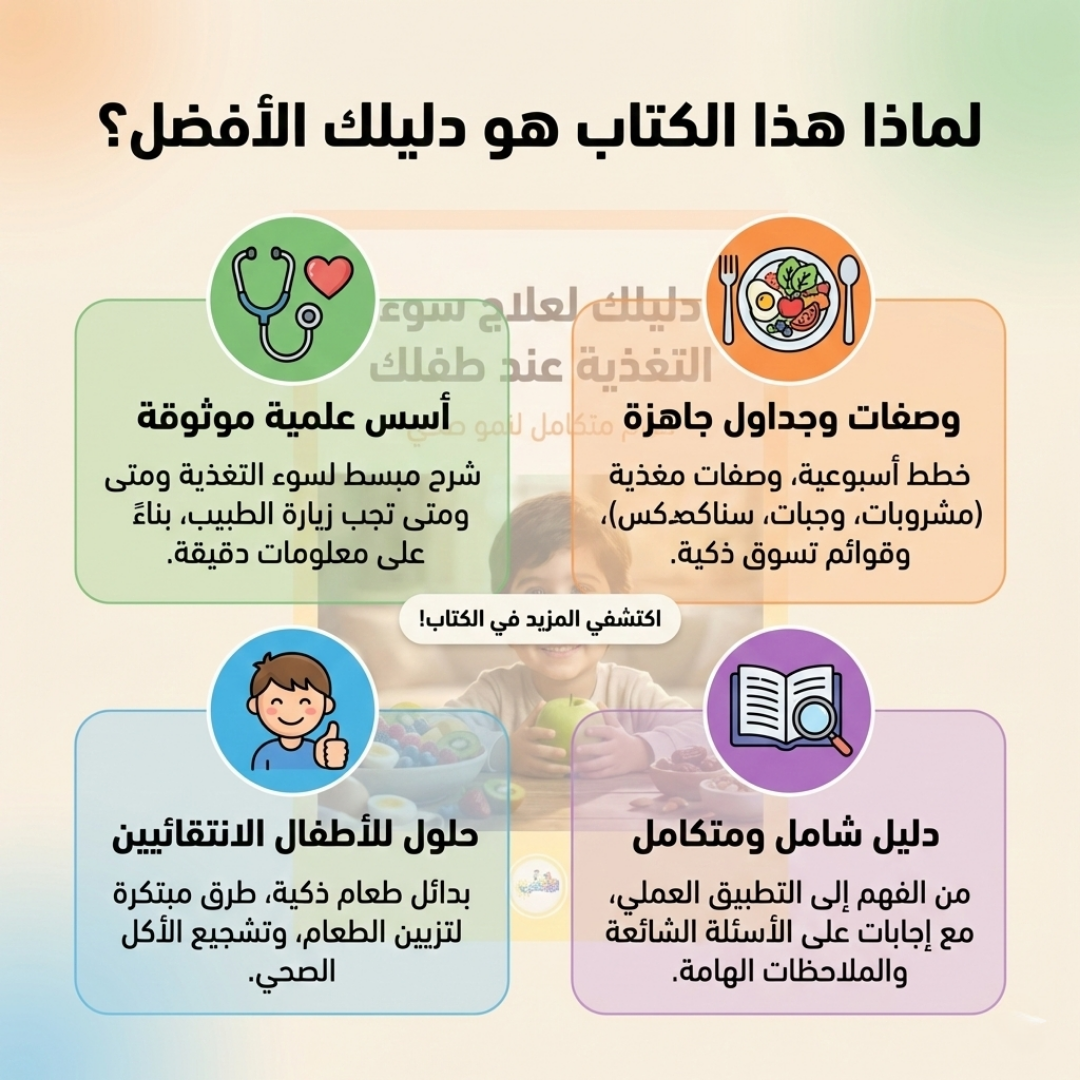 هذا الكتاب ليس مجرد كتاب طبخ، بل هو خارطة طريق لتعويض ما فات طفلك من نمو، يعتمد على مبدأ "الكثافة الغذائية": كيف نضع أكبر فائدة في أصغر لقمة!